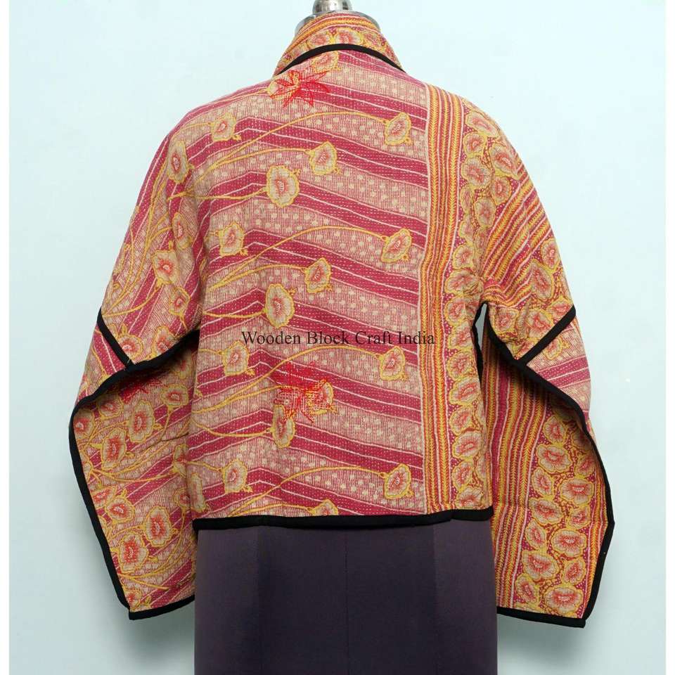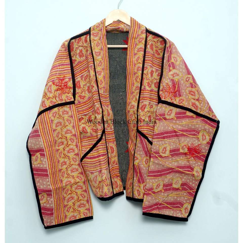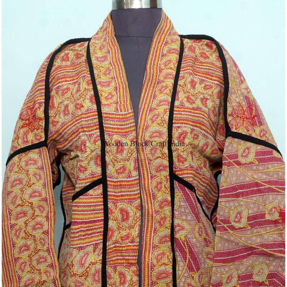 Chaqueta Multicolor Hecha a Mano 100% Algodón con Estampado Flock, Bordado Kantha, Parches Tejidos, Detalle de Botones, Estilo Vintage, Rajasthan