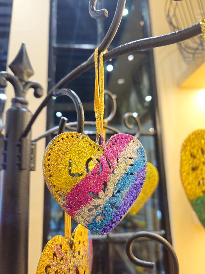 Corazón Multicolor colgante adorno de Metal brillo corazón decorativo para árbol de Navidad boda fiesta decoración del hogar pieza de regalo