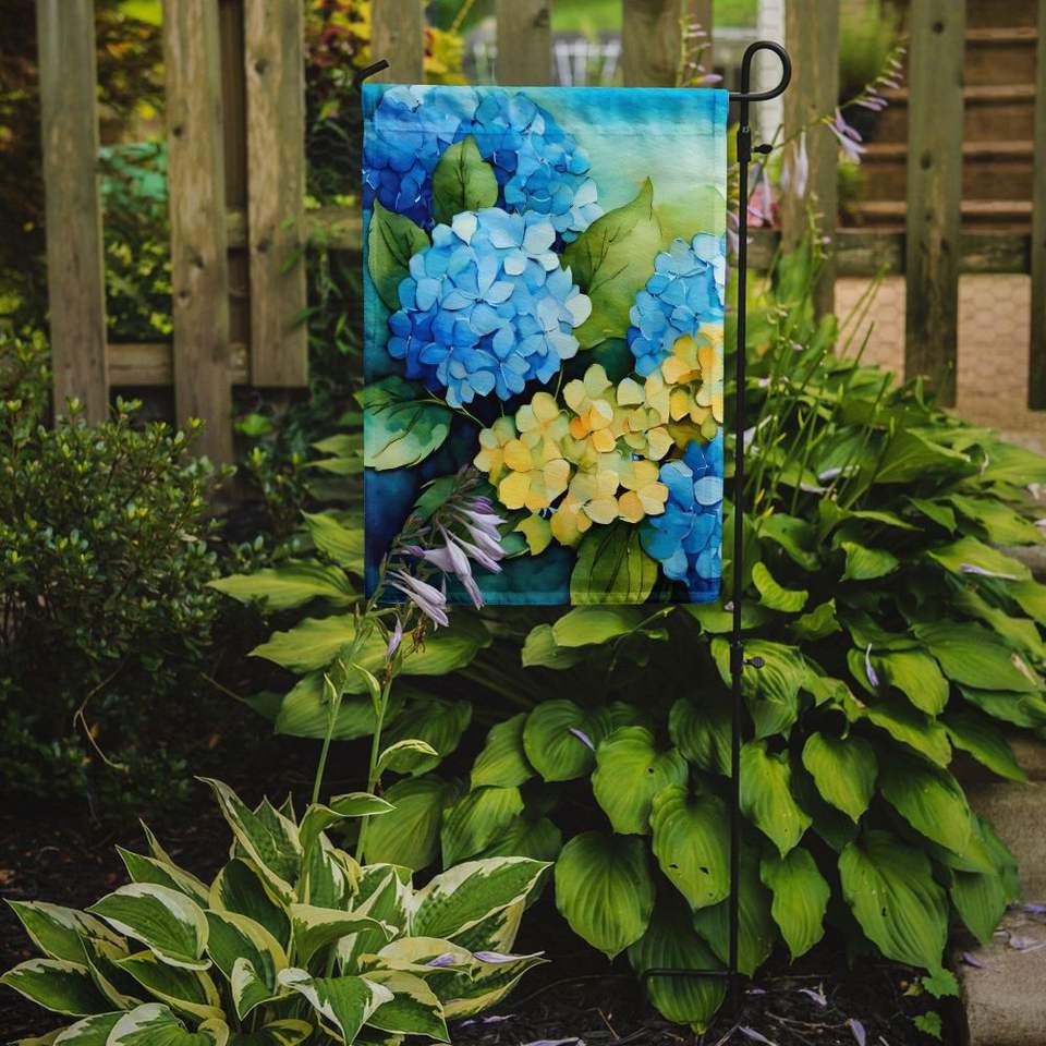 Hortensias multicolores Acuarela Bandera de jardín Buzón decorativo y cartel de patio para patio y césped Camas de flores y obras de arte
