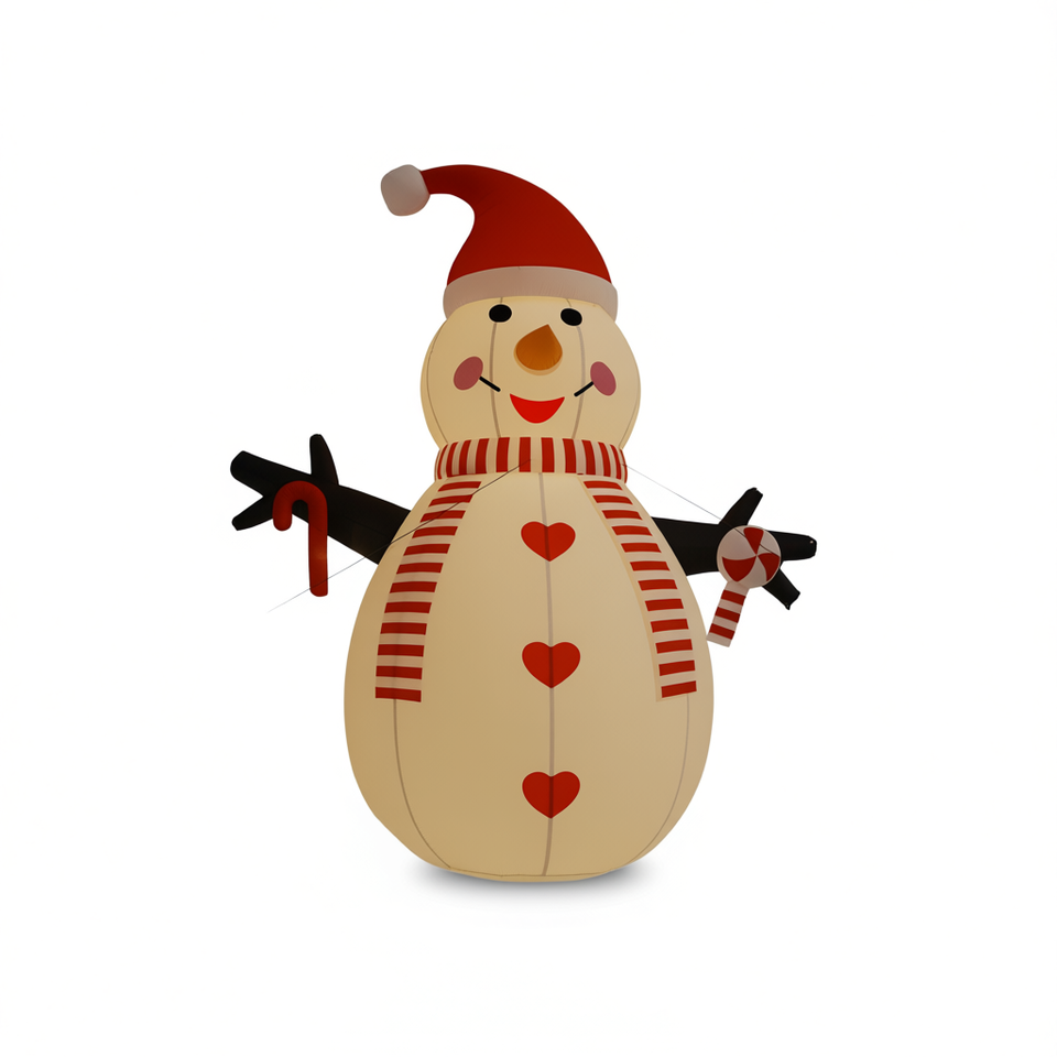 Muñeco de Nieve Inflable para Decoración Navideña de Jardín, 6 Pies de Altura, con Sombrero, Bufanda, Bastón de Caramelo y Luces