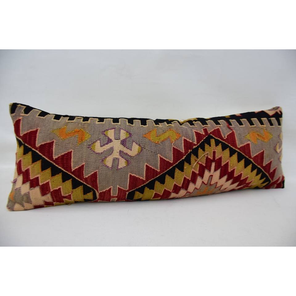 Almohada de lana de retazos Kilim multicolor, 12x36 pulgadas
