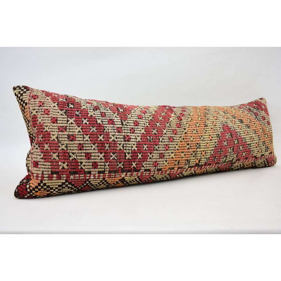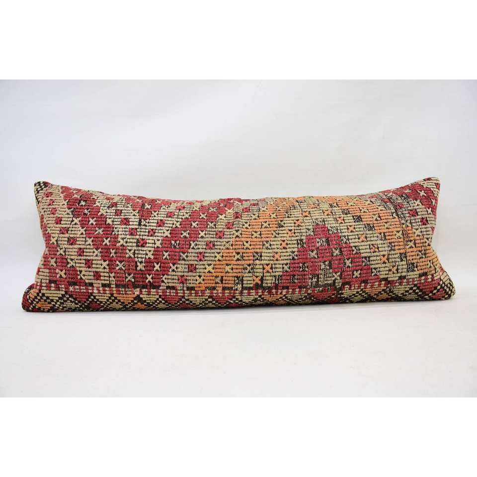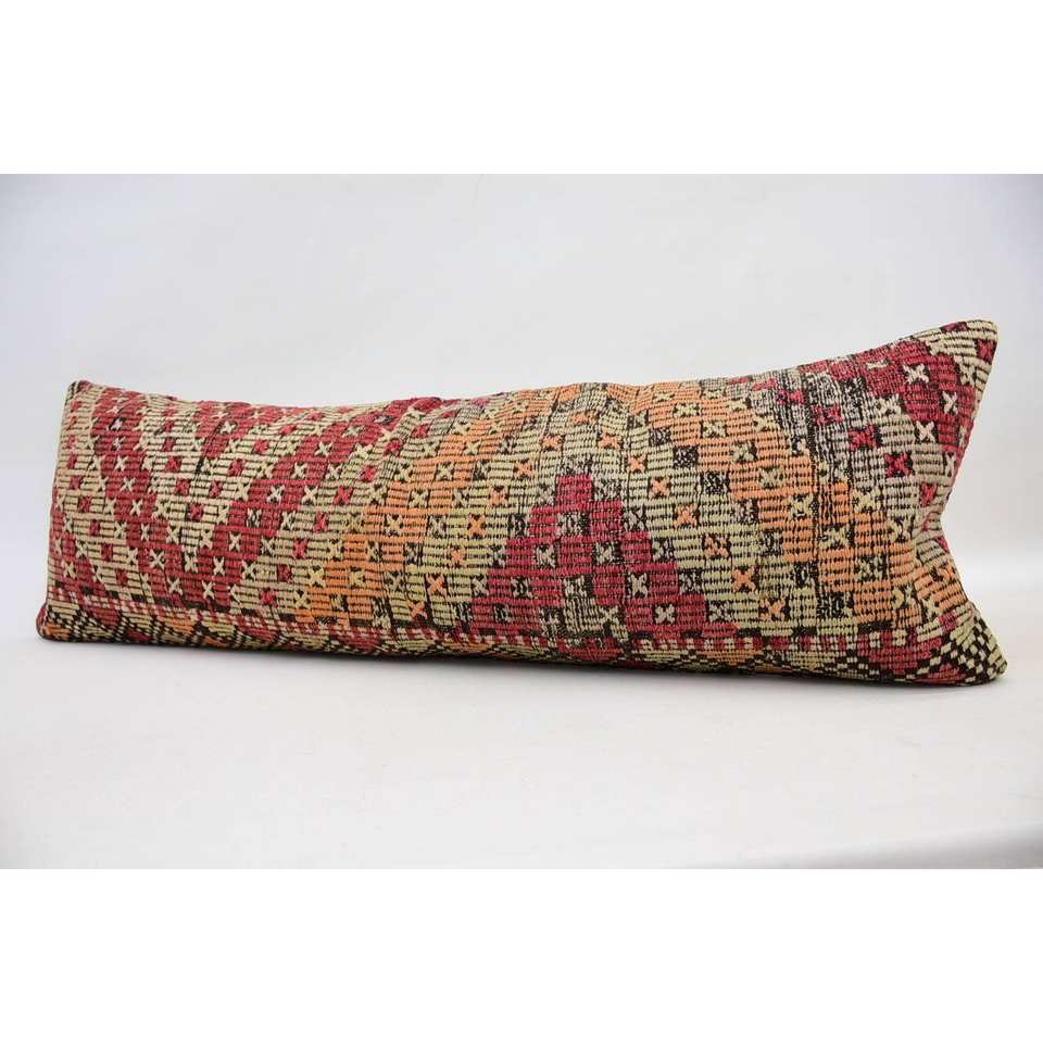 Almohada de lana de retazos Kilim Multicolor, cojín decorativo de 16x48 pulgadas con técnica tejida con patrón de hojas esponjosas Vintage