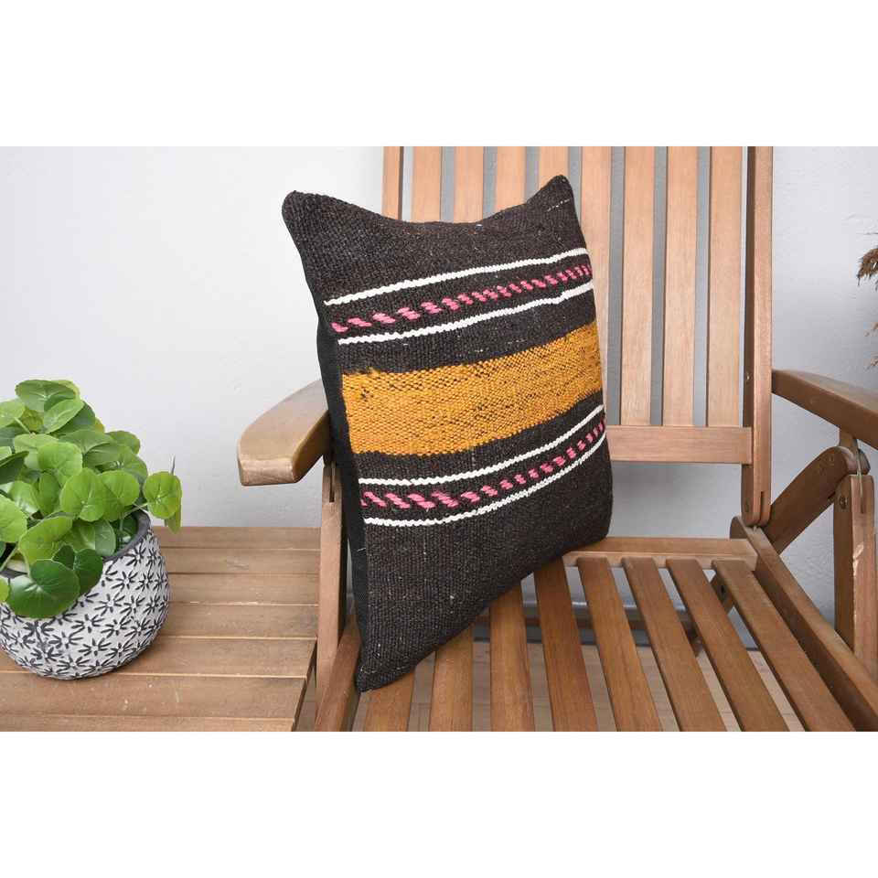 Alfombra de lana Kilim Multicolor, almohada decorativa de 18x18 pulgadas, patrón Vintage, técnica tejida, estilo bohemio
