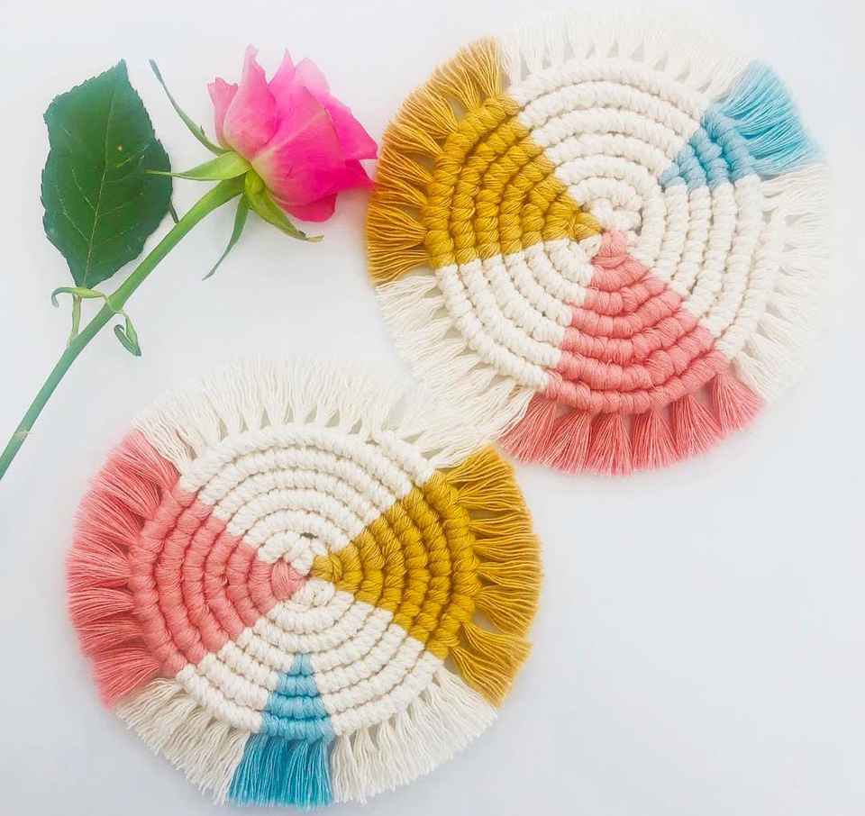 Posavasos multicolor con forma de corazón de macramé hecho a mano suave y duradero para bebidas artículo decorativo para el hogar