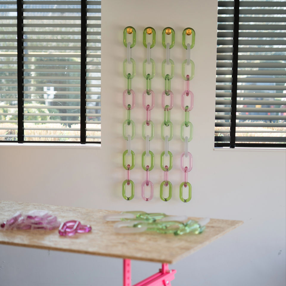 Cadena cubana de madera gruesa mate multicolor para decoración de pared de boda de primavera, diseño Art Deco