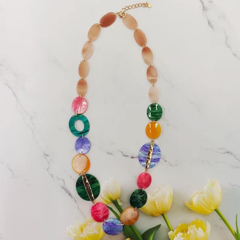 Collares de resina multicolor de nuevo estilo para niñas y mujeres, joyería ecológica natural para exportación desde India.