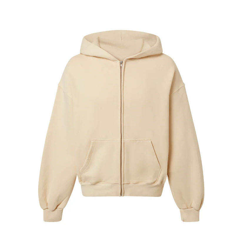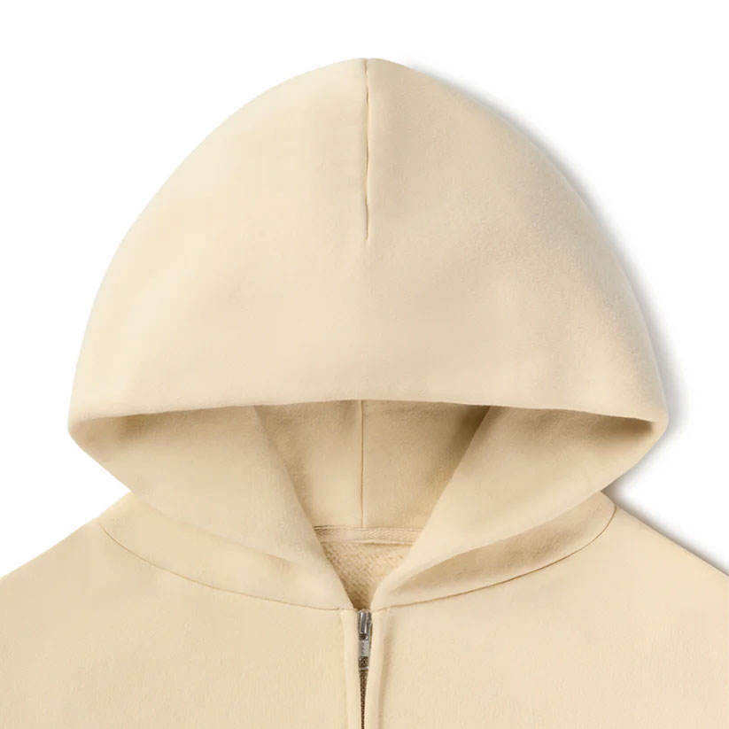 Sudadera con Capucha Beige para Hombre, Chaqueta Informal con Capucha de Forro Polar, Moda Urbana Minimalista de Invierno
