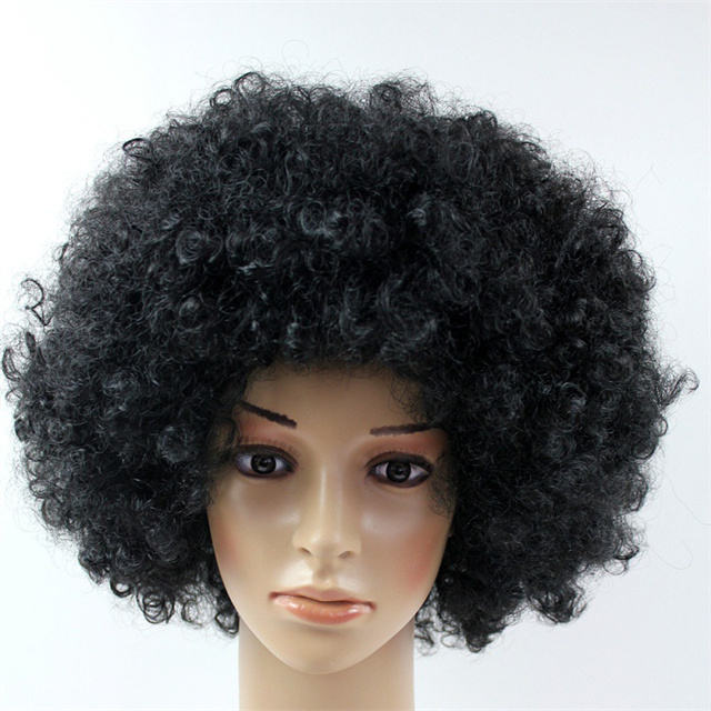 Peluca de cabello humano rizado estilo Afro, cabellera artificial con pelo de payaso corto, ondulado, redondo, Multicolor