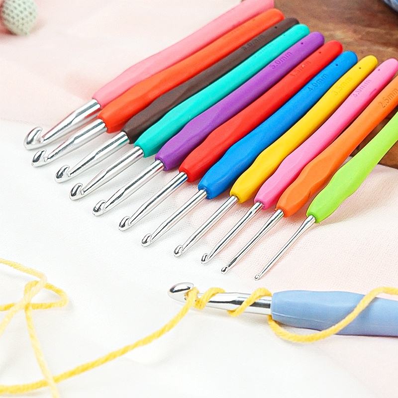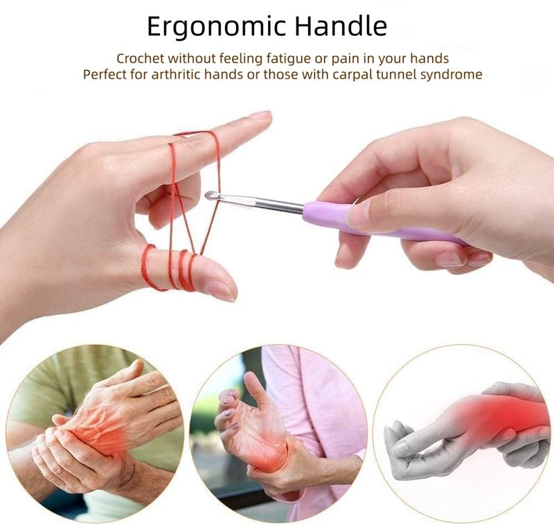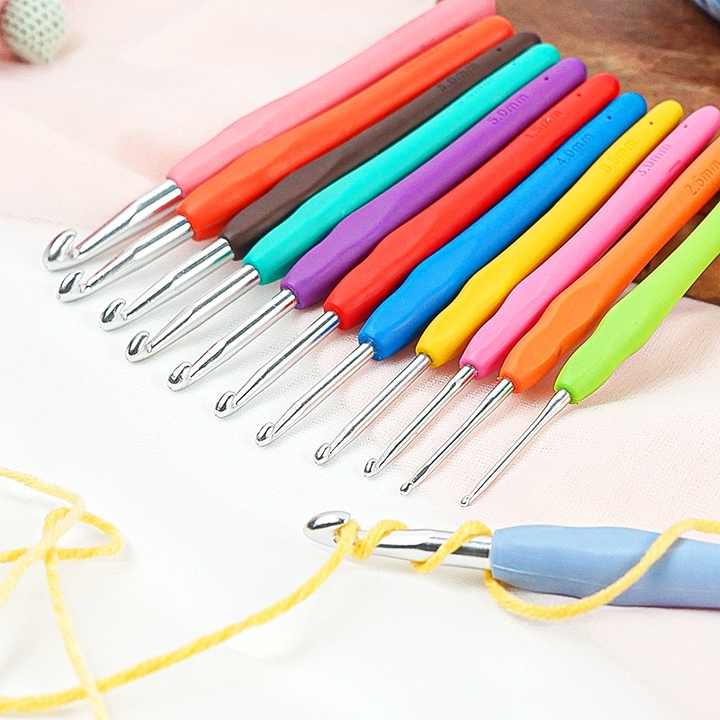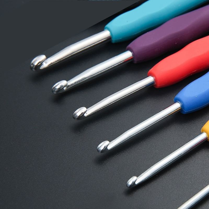 Gancho de ganchillo ergonómico con mango de silicona de aluminio