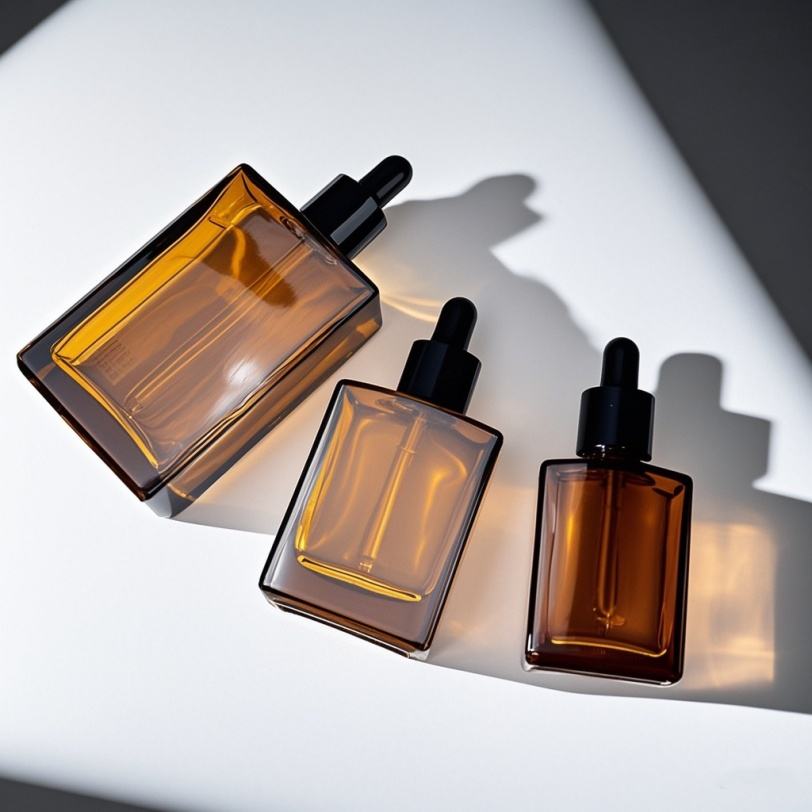 Envase de Vidrio con Gotero para Aceites Esenciales, Perfumes y Serums, Cuadrado/Rectangular, Multicolor, Ámbar/Marrón, 30ml, 50ml, 100ml