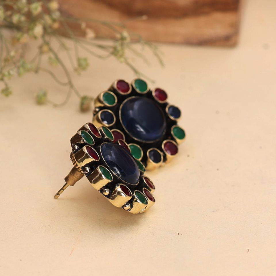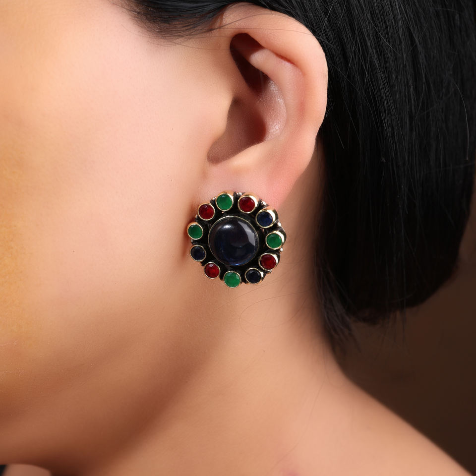 Pendientes de Botón Multicolores Hechos a Mano, Chapados en Oro Oxidado, Joyería Étnica Vintage para Mujer
