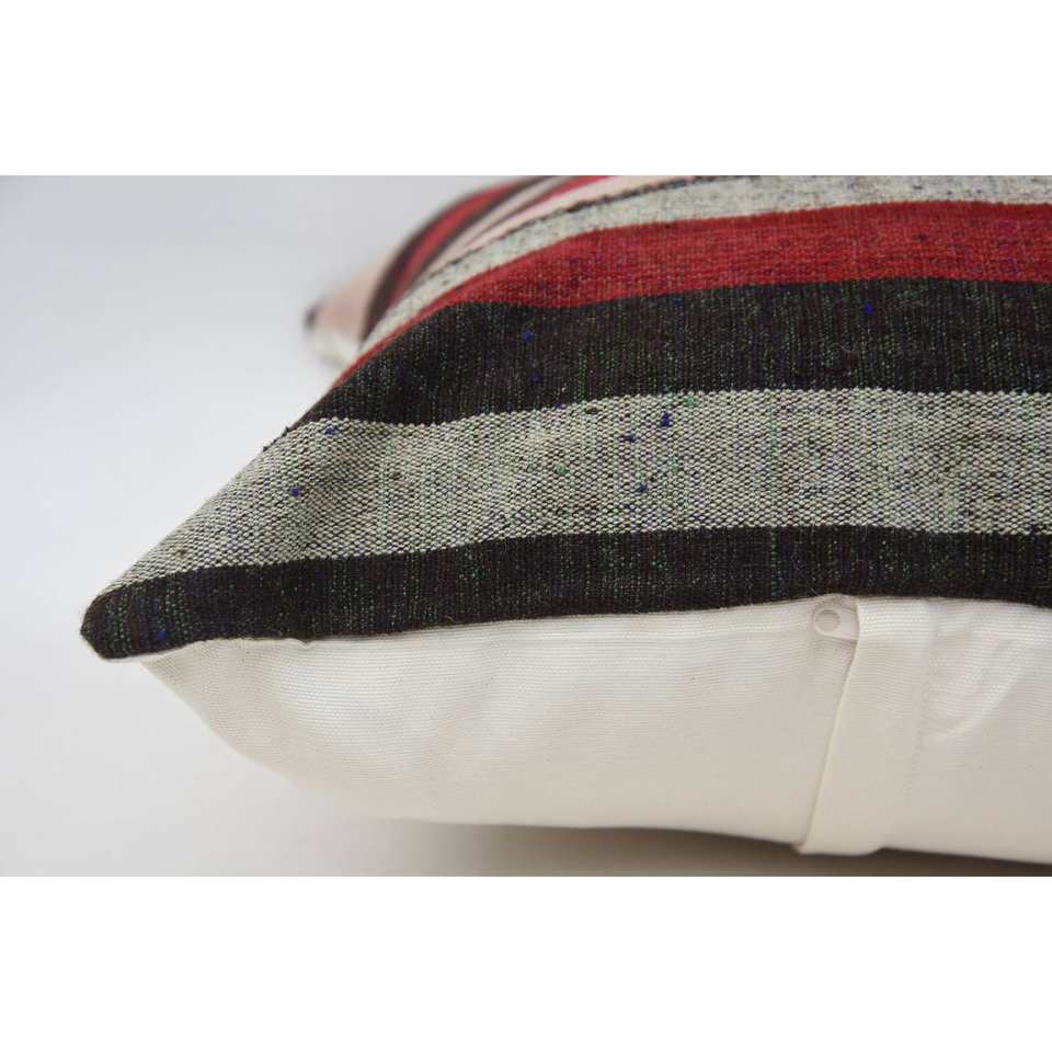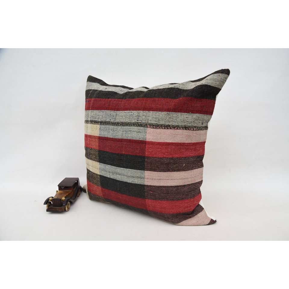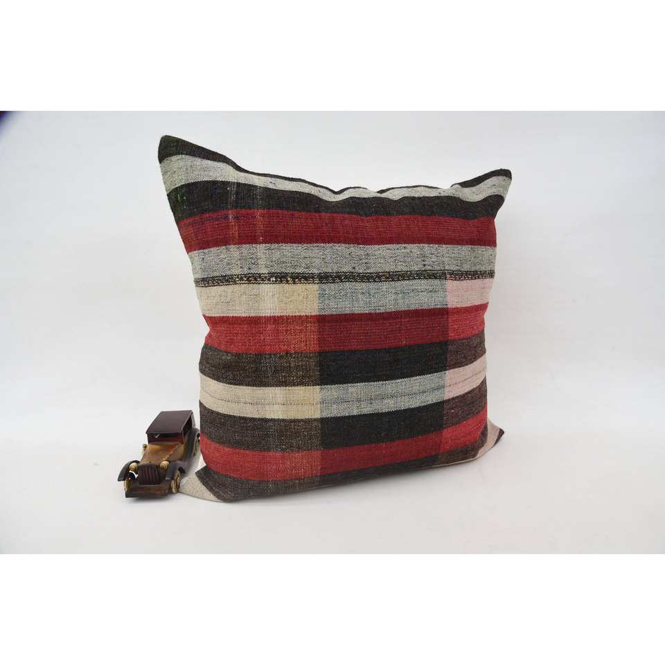 Almohada con patrón de tartán multicolor 24x24 pulgadas Técnica tejida a cuadros Kilim de lana Vintage