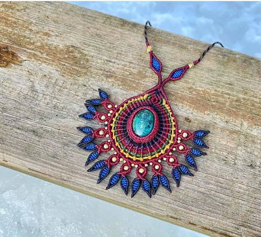 Collar Colgante de Macramé con Hilo Multicolor, Joyería Boho Hecha a Mano, Ajustable, Regalo para Mujer