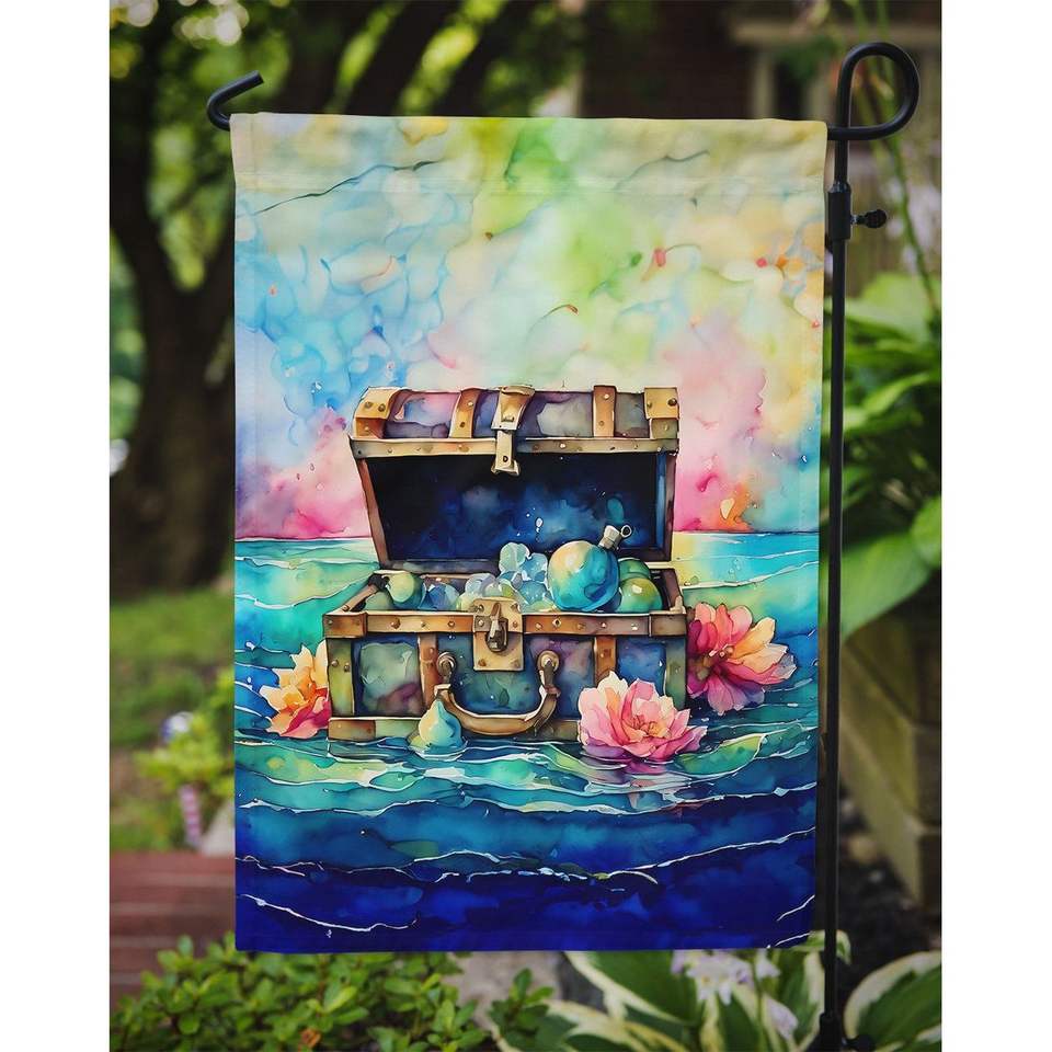 Cofre del Tesoro multicolor Bandera de jardín Banner decorativo de patio para ilustraciones de patio para macizos de flores y decoración de buzón