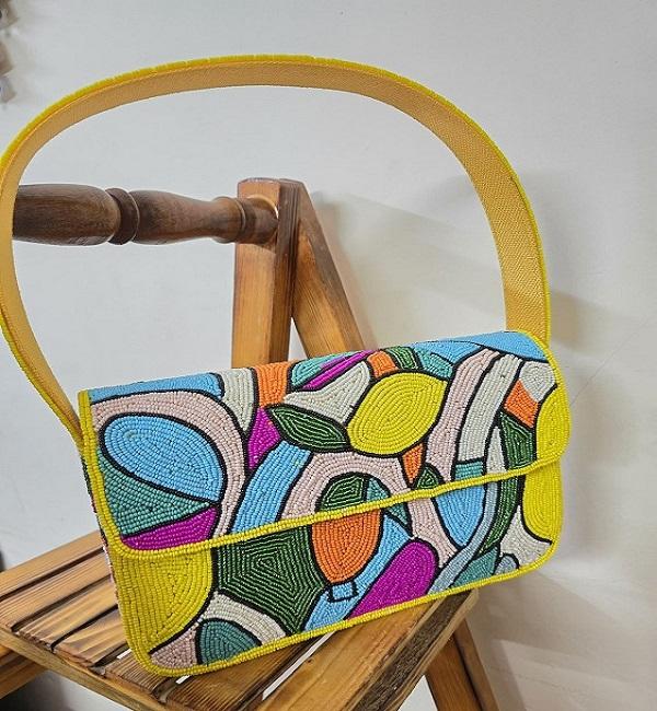 Bolso Bandolera de Cuero Genuino Hecho a Mano con Patrón Geométrico Multicolor, Correa Ajustable con Cadenas para Compras al Aire Libre