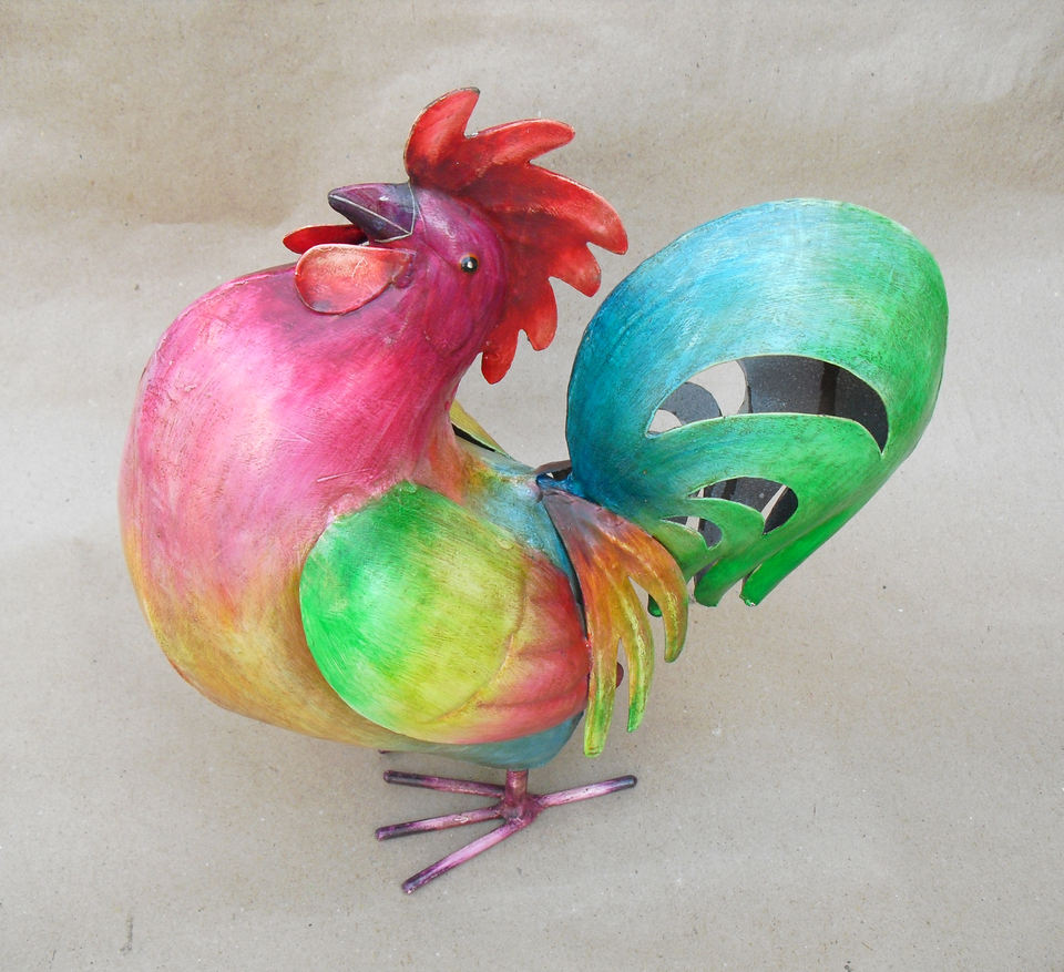 Escultura de Gallo de Metal Moderna Hecha a Mano, Multicolor, de Alta Calidad, con Acabado en Polvo, Ideal para Decoración