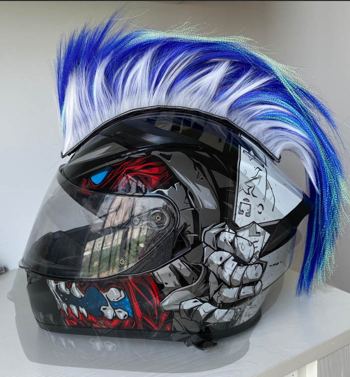 Peluca multicolor de gancho y bucle para motocicleta, cabeza de pene, casco decorativo, cabeza de panal, peluca de fibra química