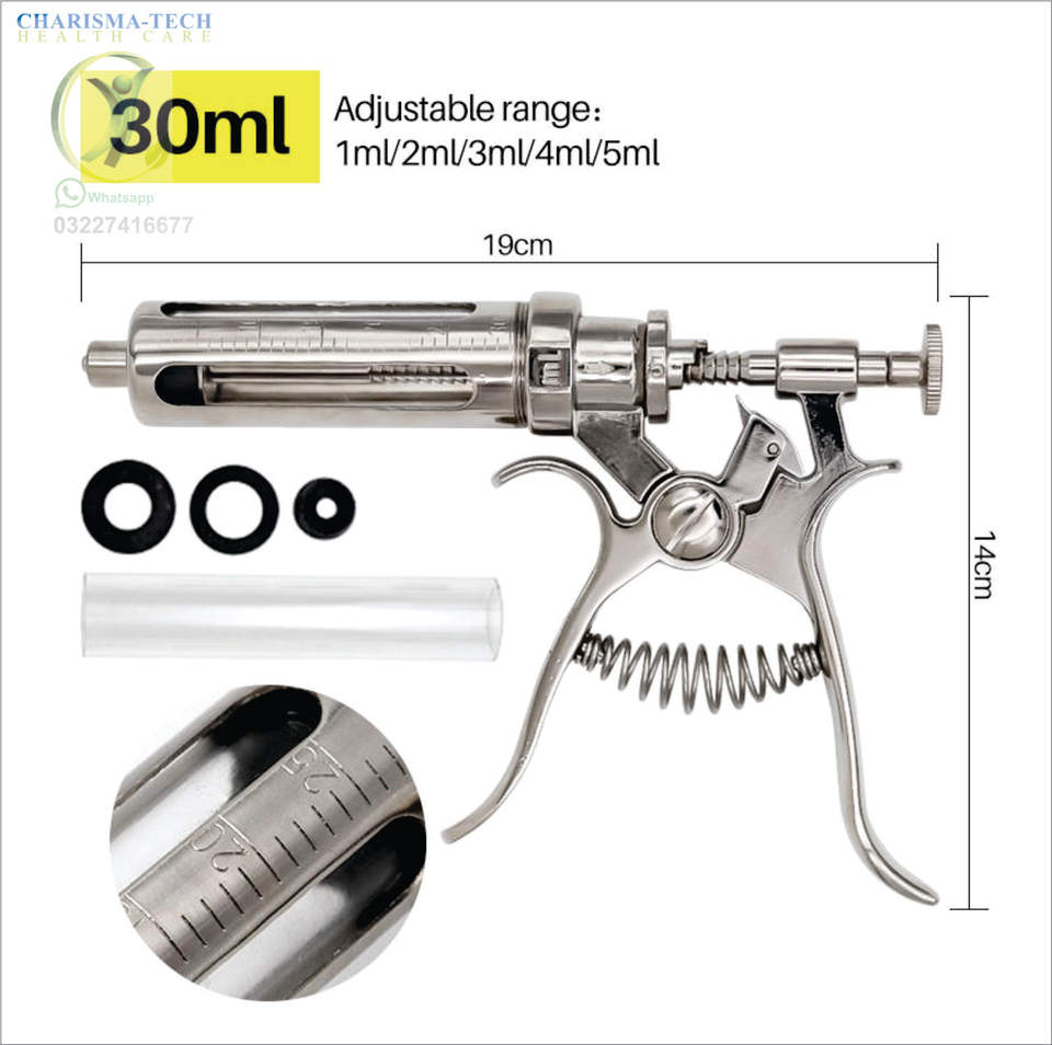 Jeringa Dosificadora Automática de Acero Inoxidable Alemán, Reutilizable, Multidosis, con Dosis Ajustable, 50 ml, Herramienta de Dosificación Veterinaria para Ganado