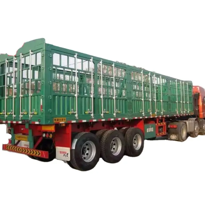 Semirremolque Multifuncional de 3 Ejes con Barandas Laterales Altas para Almacén, para Carga de 40-80 Toneladas, Remolque para Camión de Carga
