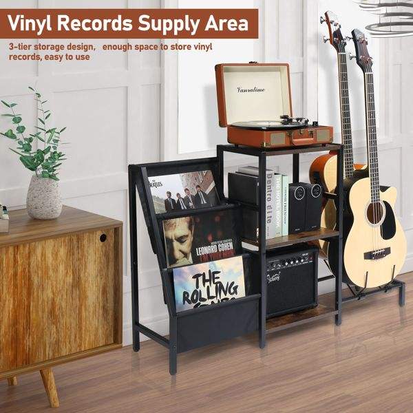 Multifunction 3-Tier Vinyl Record Storage Stand for Acoustic Electric Guitar & Bass for Guitar Players & Music Enthusiasts