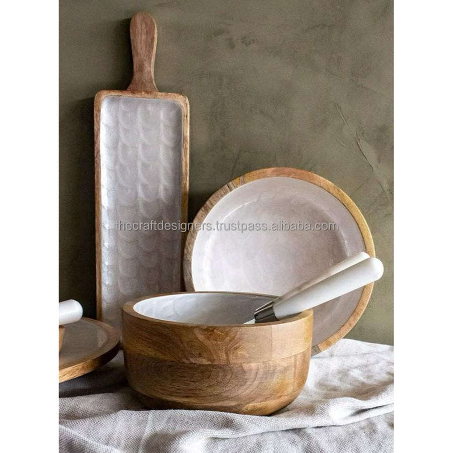 Cuenco de diseño multifunción con cuchara Cuencos duraderos ecológicos Cuencos de madera personalizados Esmalte blanco Frutas y ensaladera Impermeable