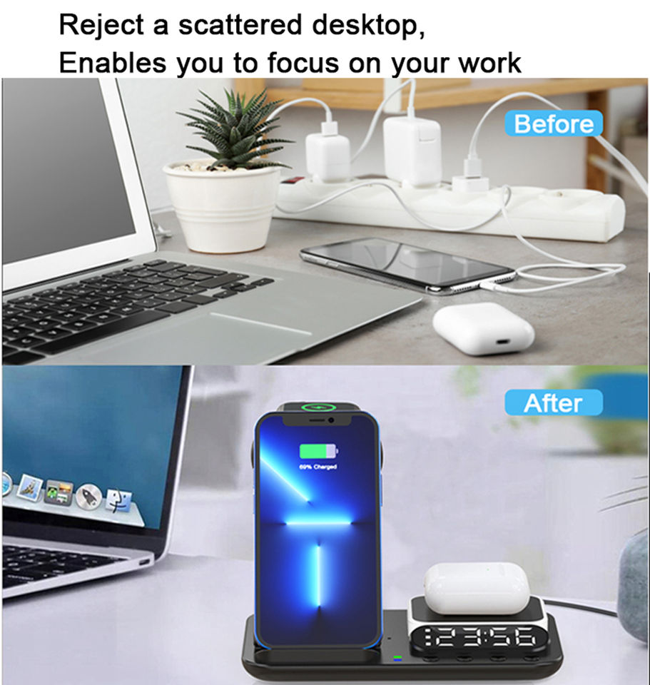 Cargador inalámbrico 3 en 1 plegable de escritorio multifunción con luz Led para Iphone X 12 13 14 15 Android