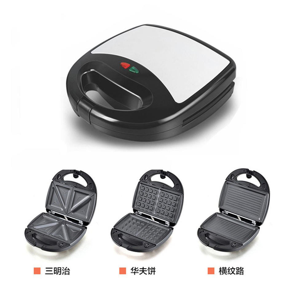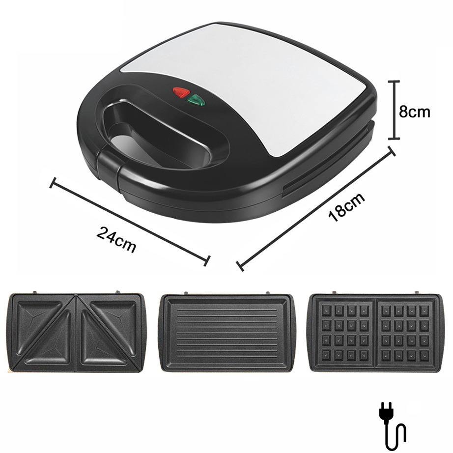 Plancha eléctrica multifunción de acero inoxidable 3 en 1 para desayunos, con calentamiento de doble cara para sándwiches, gofres y filetes.