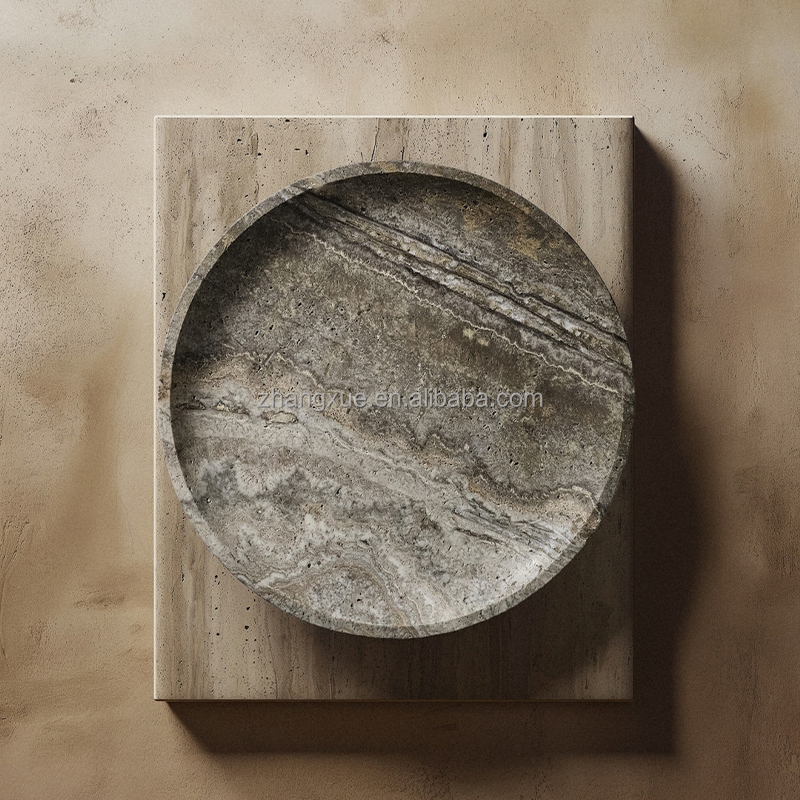 Bandeja de decoración del hogar con patrón exquisito multifunción, bandeja redonda de mármol Natural para colocación de alimentos