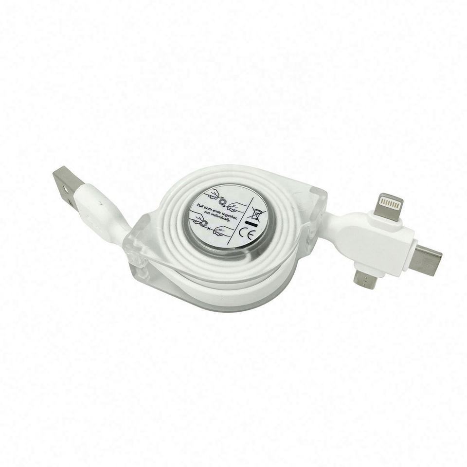 Cable USB Retráctil 3 en 1 Multifuncional de Carga Rápida con Material Plástico y Opciones de Longitud Personalizada