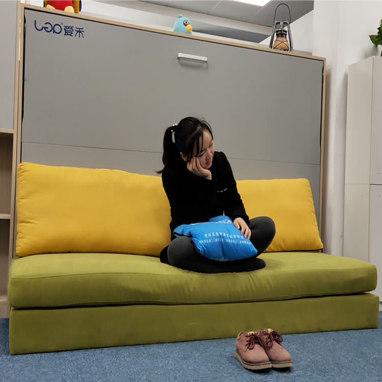 Mueble multifunción horizontal pequeño, marco de cama de pared con sofá de doble asiento