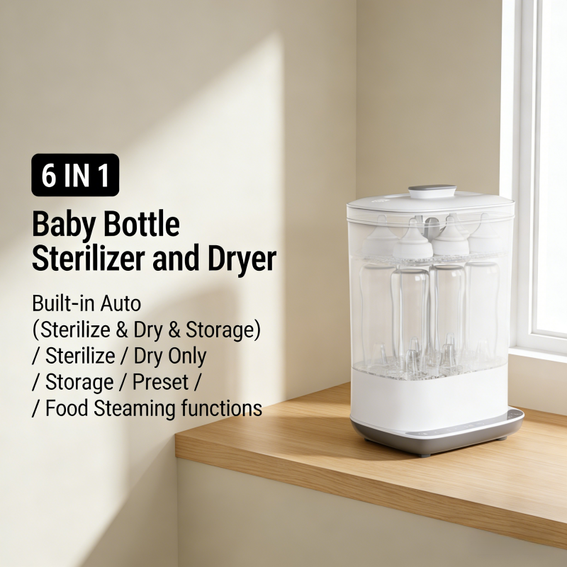 Esterilizador de Biberones Eléctrico Inteligente Multifuncional a Vapor, para Bebés de 0 a 12 Meses, Plástico Libre de BPA