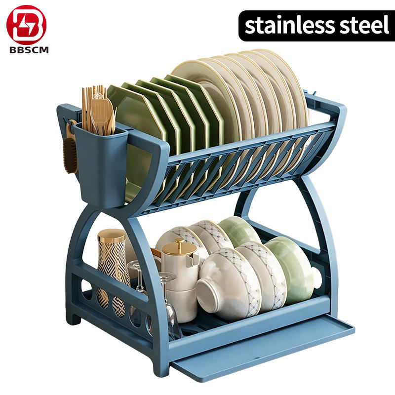 Organizador de Cocina Multifuncional de Doble Capa, Escurridor de Platos, Organizador de Cubiertos, Contenedor de Almacenamiento para Cuchillos y Tenedores