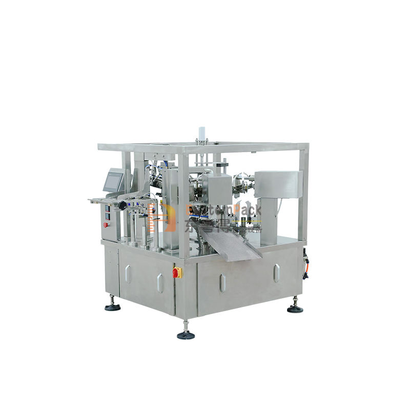 Máquina de envasado de sopa de Goulash de pechuga de pollo a la parrilla de espinaca y alcachofa rotativa de alimentos prefabricados multifunción