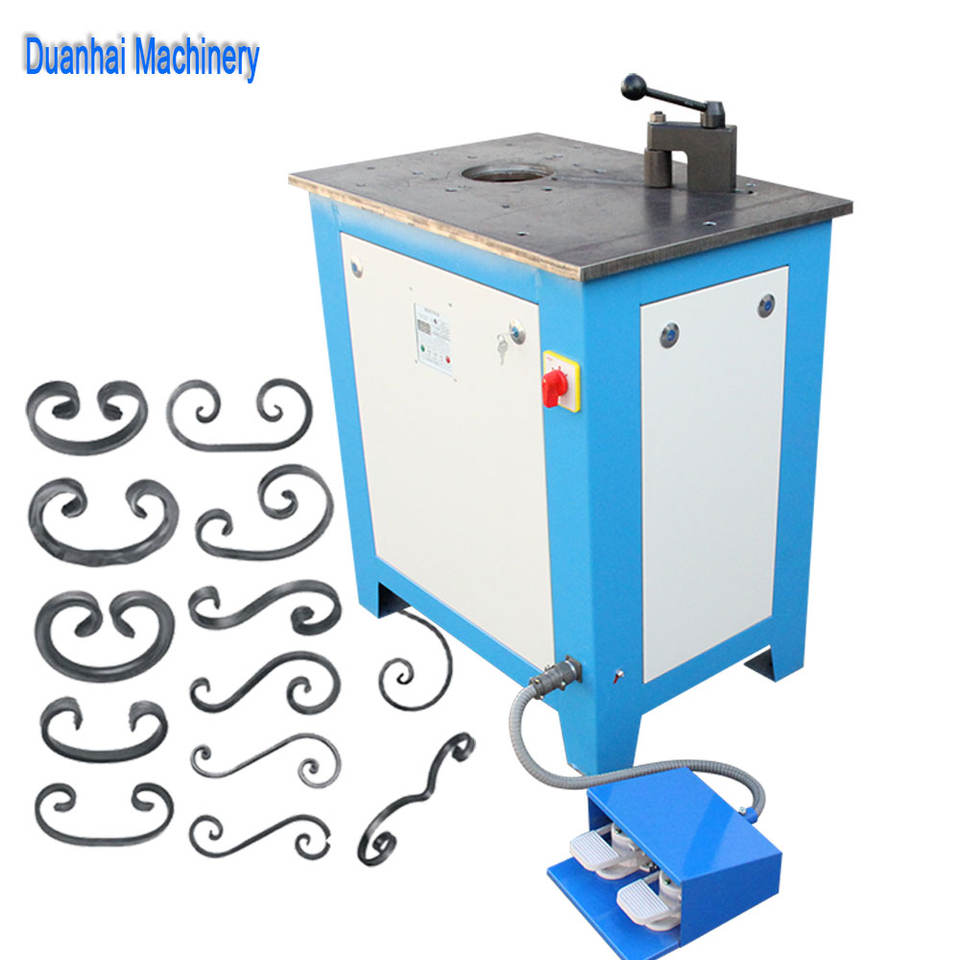 Máquina de forja multifunción usada para doblado y enrollado de hierro forjado, color negro.