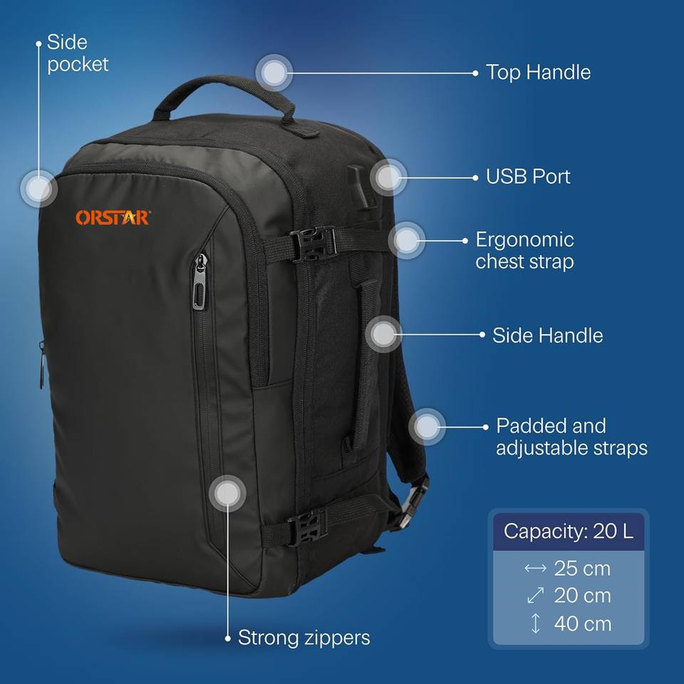 Mochila multifunción de viaje para ordenador portátil, mochila de mano extensible para puerto de carga USB, bolsa de cabina, mochila 40x20x25