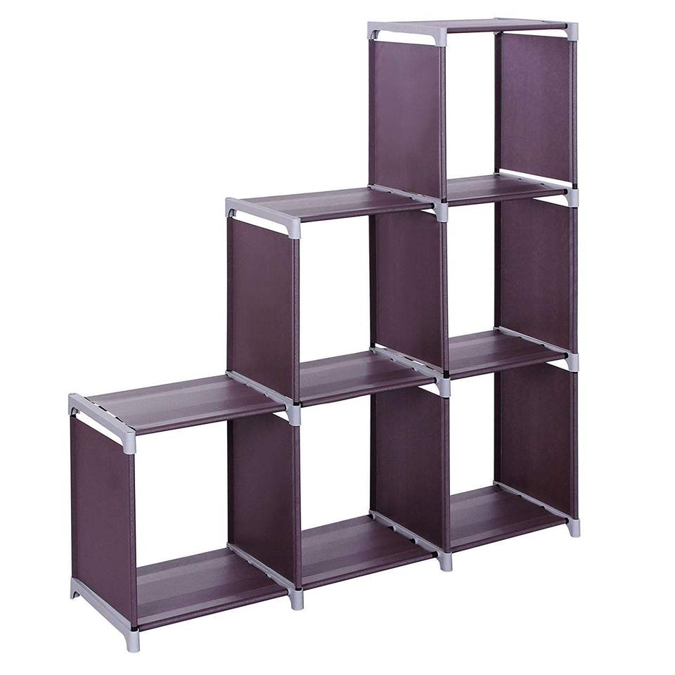 Organizador de Almacenamiento Multifuncional de 2 Niveles y 6 Cubos, Librería Ensamblada con 6 Compartimentos para un Espacio de Vida Conveniente