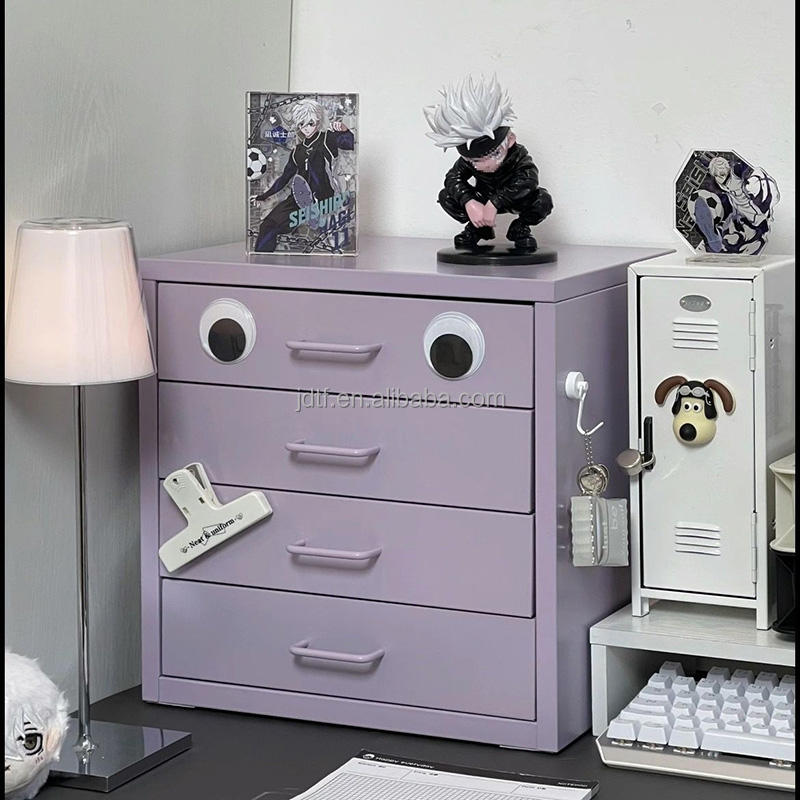 Caja de almacenamiento de escritorio de Metal pequeña blanca multifuncional de 4 cajones, organizador de escritorio de acero a prueba de polvo para sala de estar