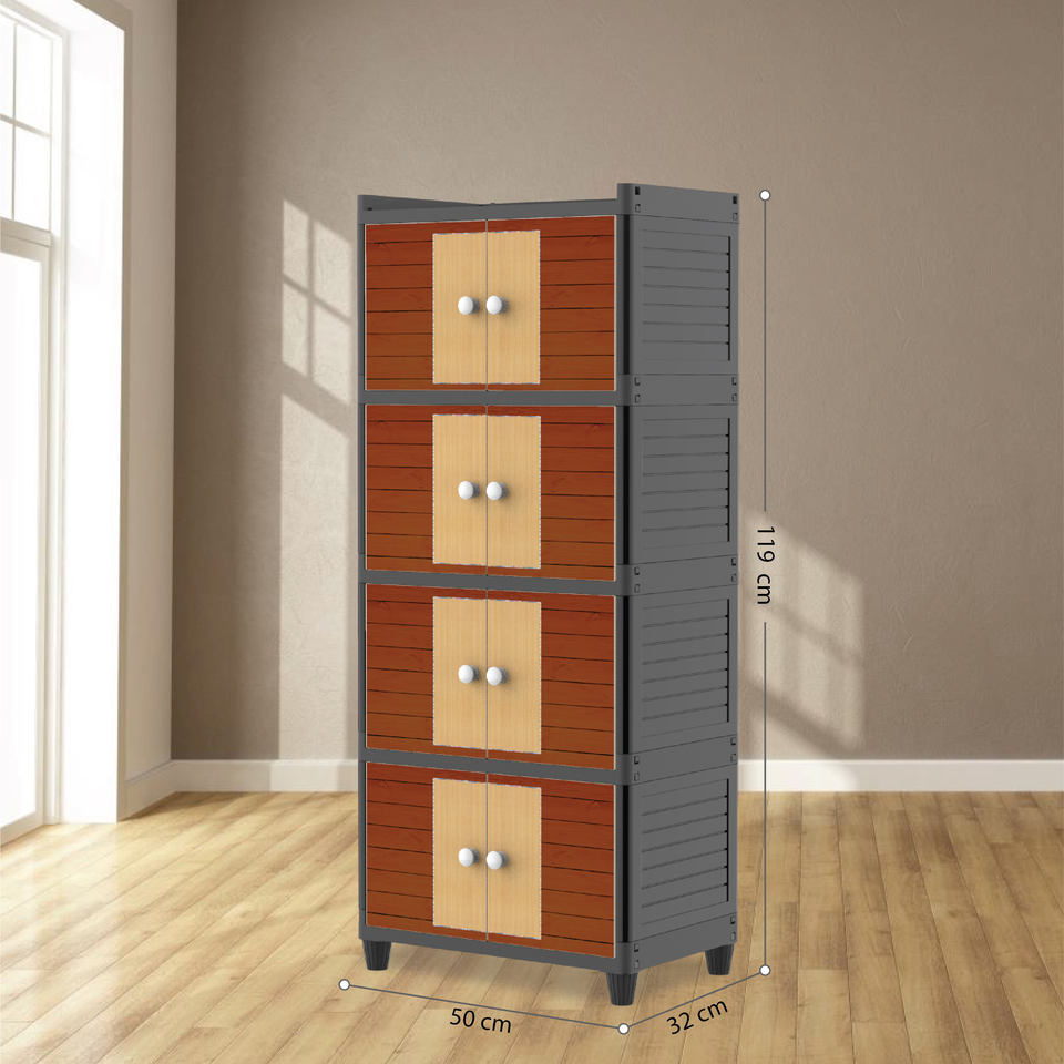 Armario de Almacenamiento de Plástico Multifuncional de 4 Niveles (Twinbox Fit), presenta una solución moderna y práctica para guardar ropa.