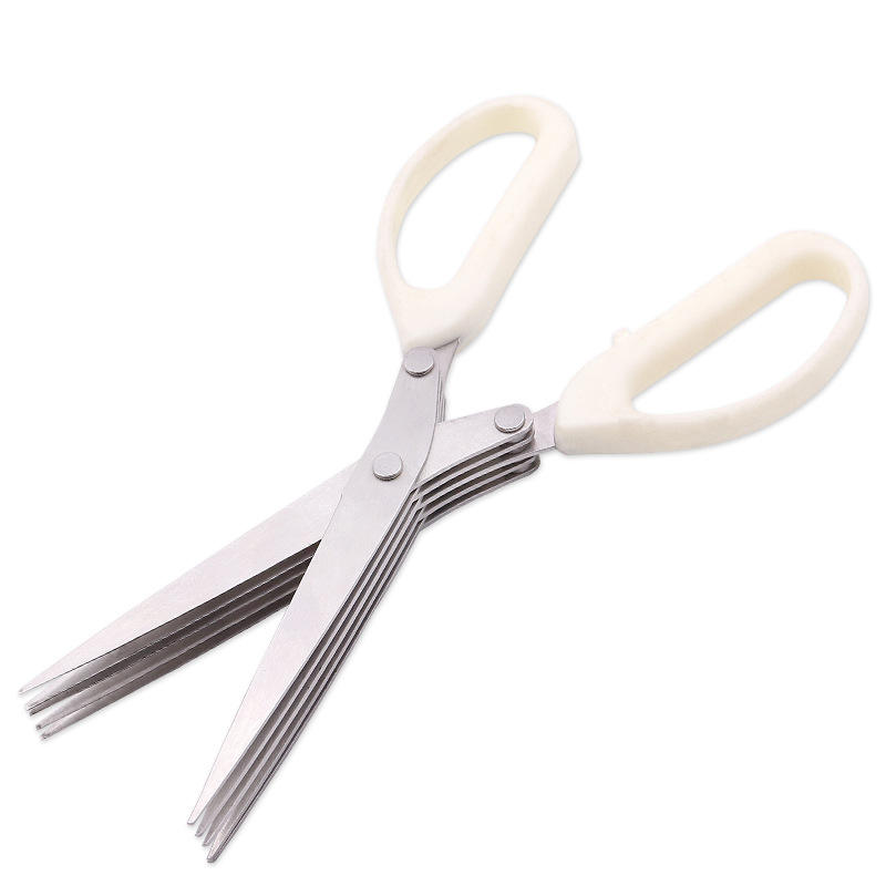 Tijeras de cocina multifuncionales 5 en 1 de acero inoxidable con cabeza recta para cortar verduras y hierbas