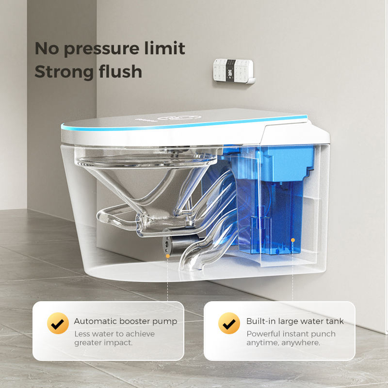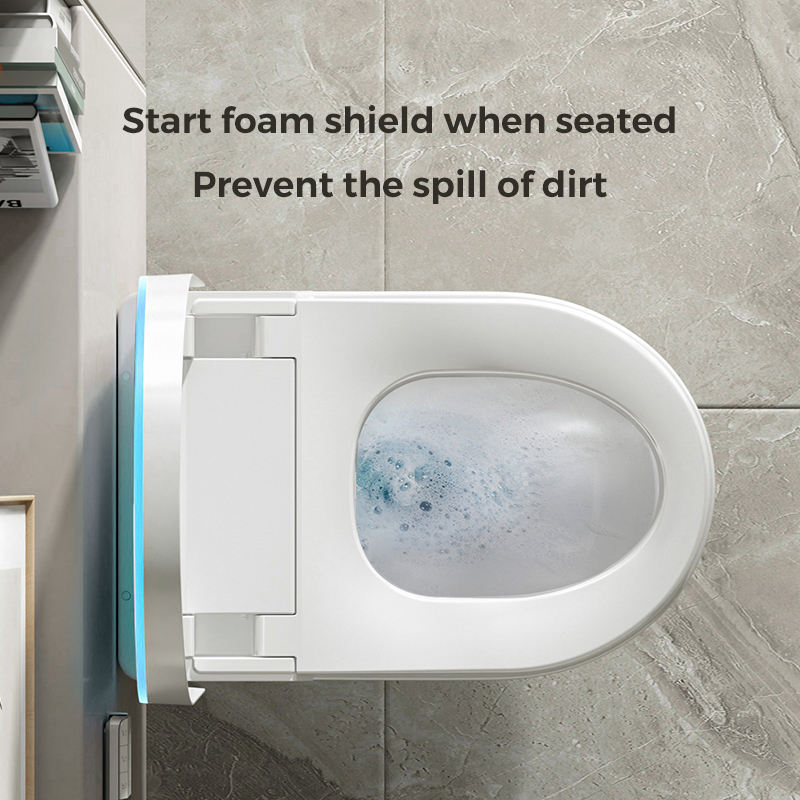 Tanque integrado multifuncional, funcionamiento automático, tubo de entrada de agua, soporte de válvula de ángulo, WC inteligente, inodoro inteligente colgado en la pared