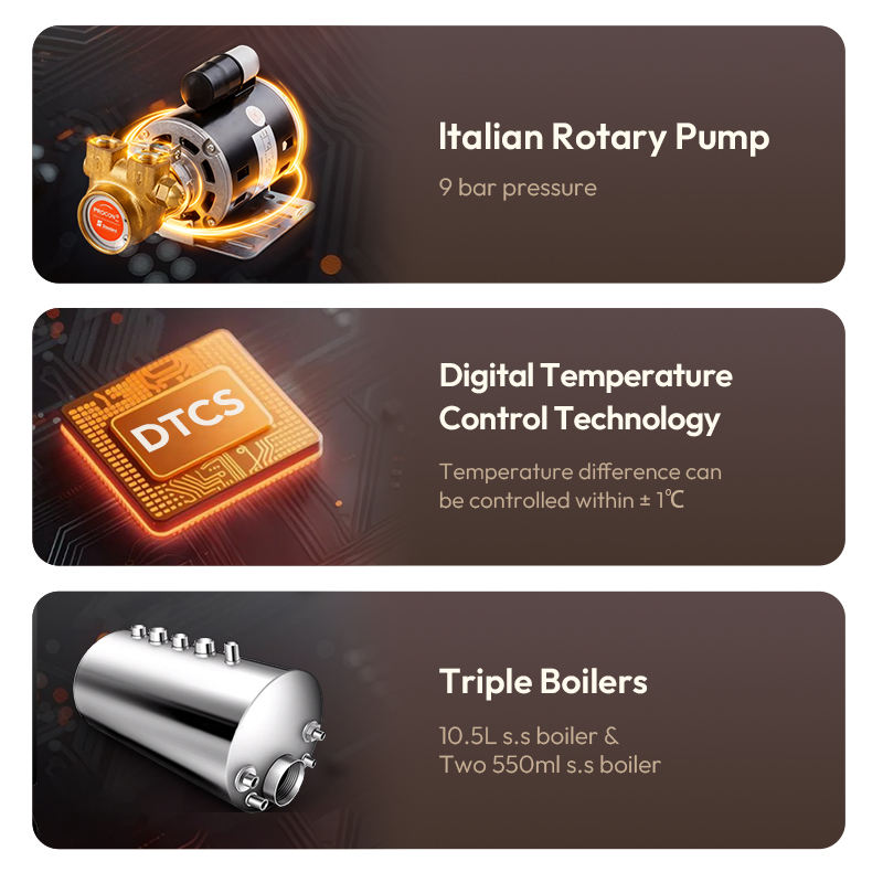 Caldera de Vapor:Una caldera primaria y secundaria de acero inoxidable de 10.5L