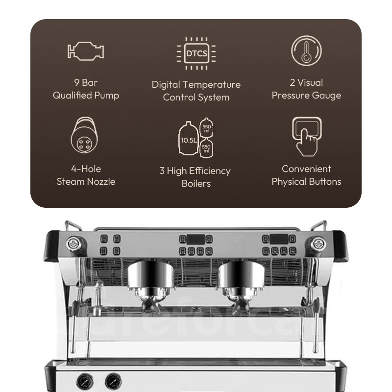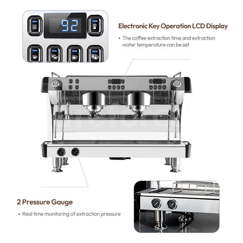 Máquina de café espresso comercial Carbo multifuncional 9 Bar 2 Grupo Máquina de café espresso comercial profesional