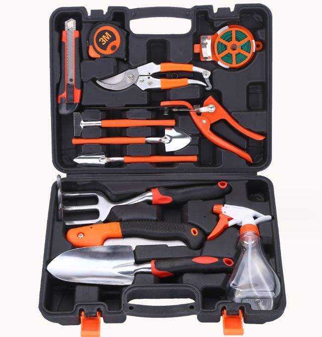 Juego de Herramientas de Jardinería Multifuncional de Acero al Carbono, Estuche de Herramientas de 13 Piezas, Kit de Herramientas de Jardinería OEM, Rastrillo, Tijeras para Ramas, Sierra Plegable