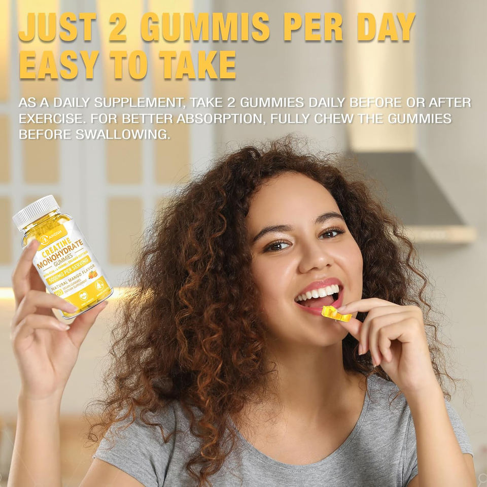 Gomitas Multifuncionales de Creatina Pre-Entrenamiento, Gomitas de Monohidrato de Creatina Pura, Gomitas de Creatina para Aumentar de Peso, Proporcionan Energía