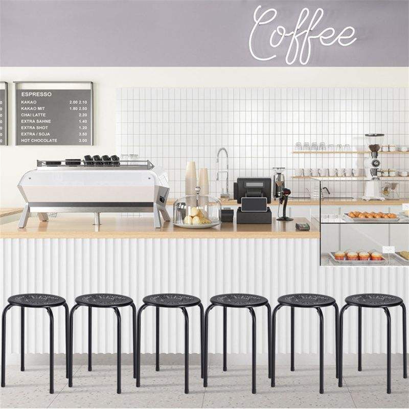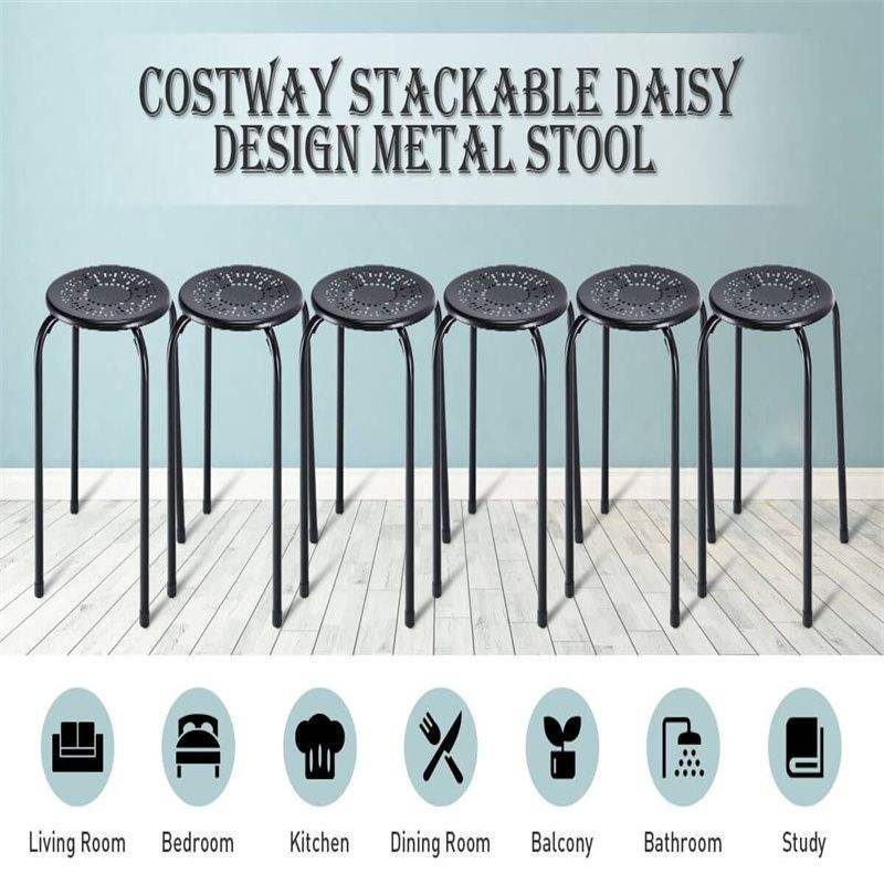 Juego de 6 Taburetes de Bar Redondos de Metal con Diseño de Margarita Multifuncional, Apilables