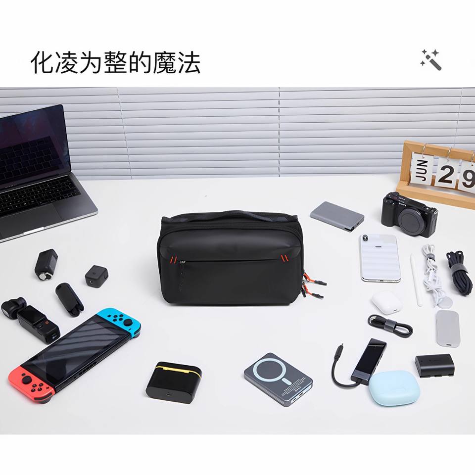 Bolsa de almacenamiento digital multifuncional naranja para ir al trabajo y viajar con cierre de cremallera