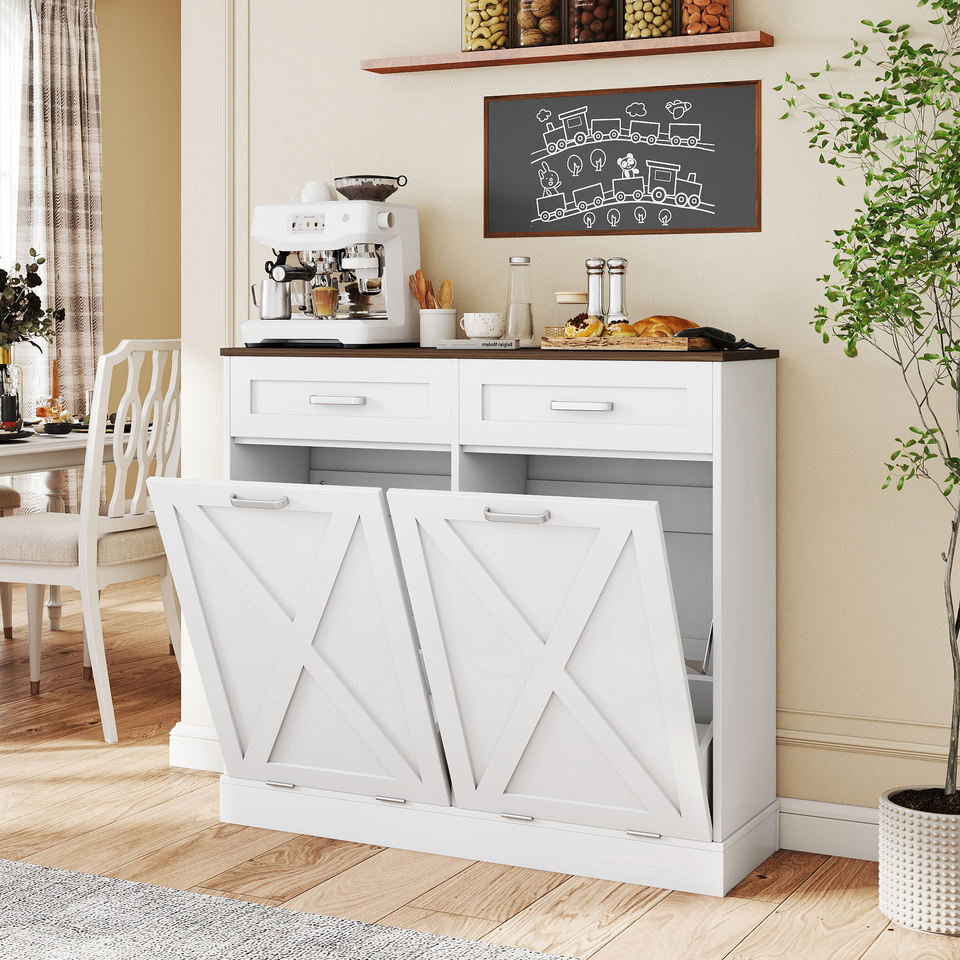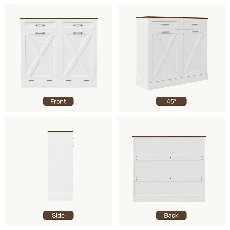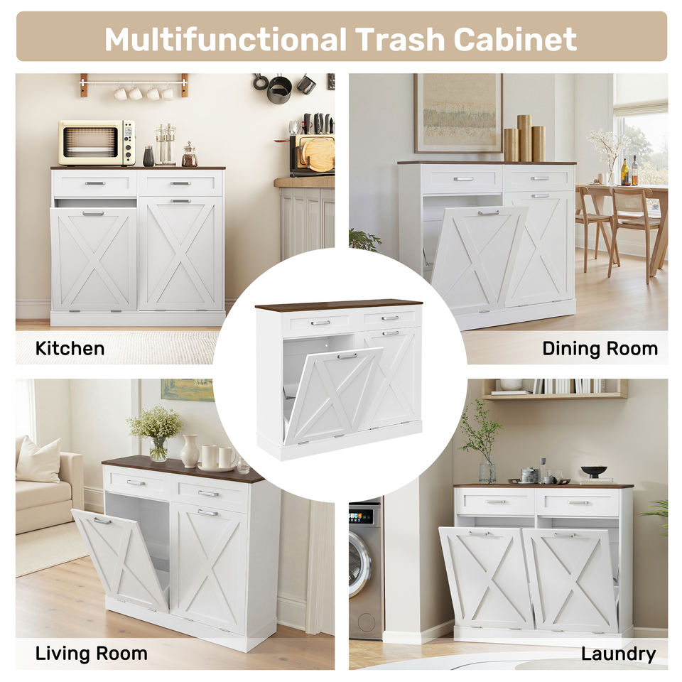 Cubo de Basura de Madera Multifuncional con Doble Abertura en Forma de T, con Cajones y Puerta Corredera, Resistente al Agua y Duradero