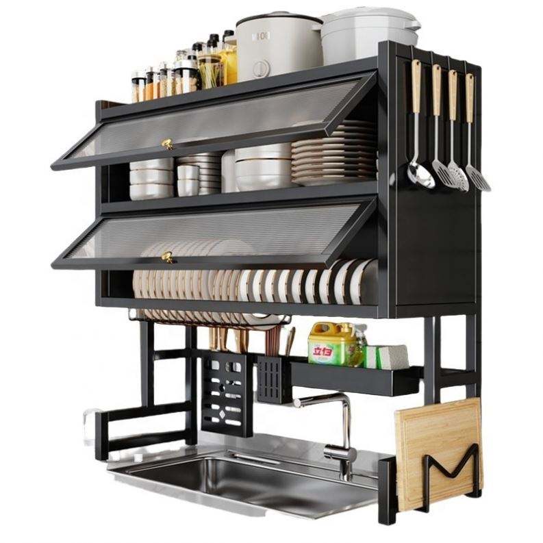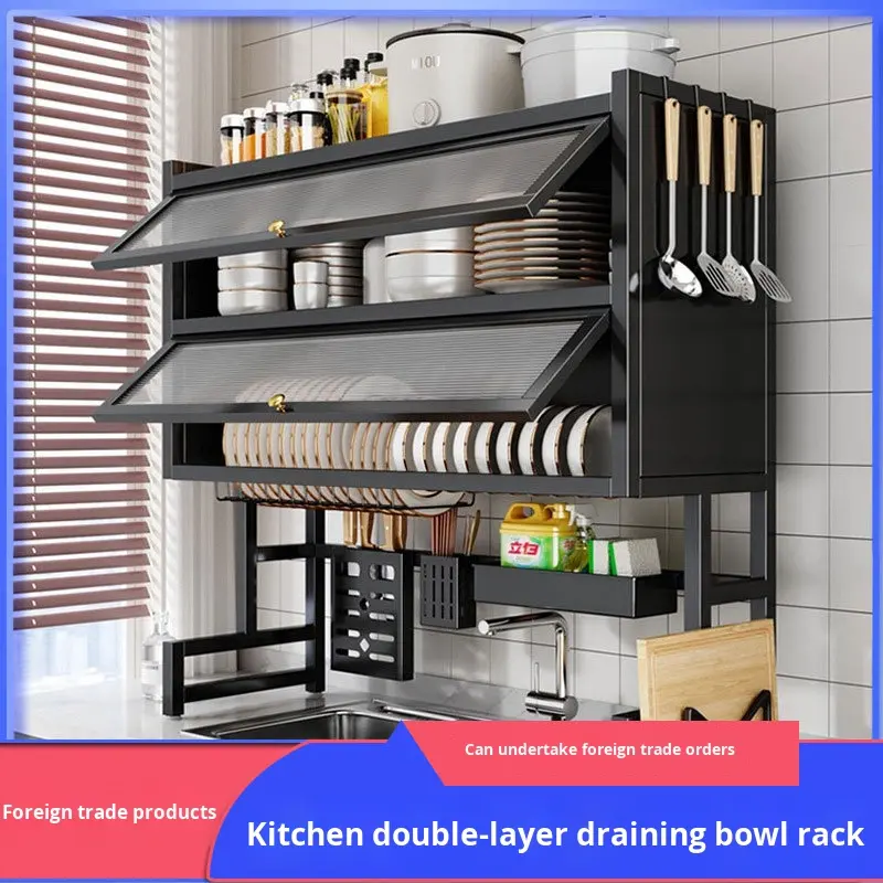 Estante de Almacenamiento Multifuncional para Fregadero de Cocina, Doble Capa, Moderno, a Prueba de Polvo, de Acero al Carbono, Impermeable, para Platos y Tazones
