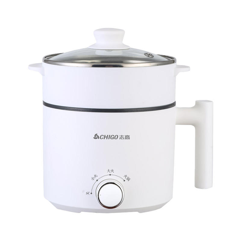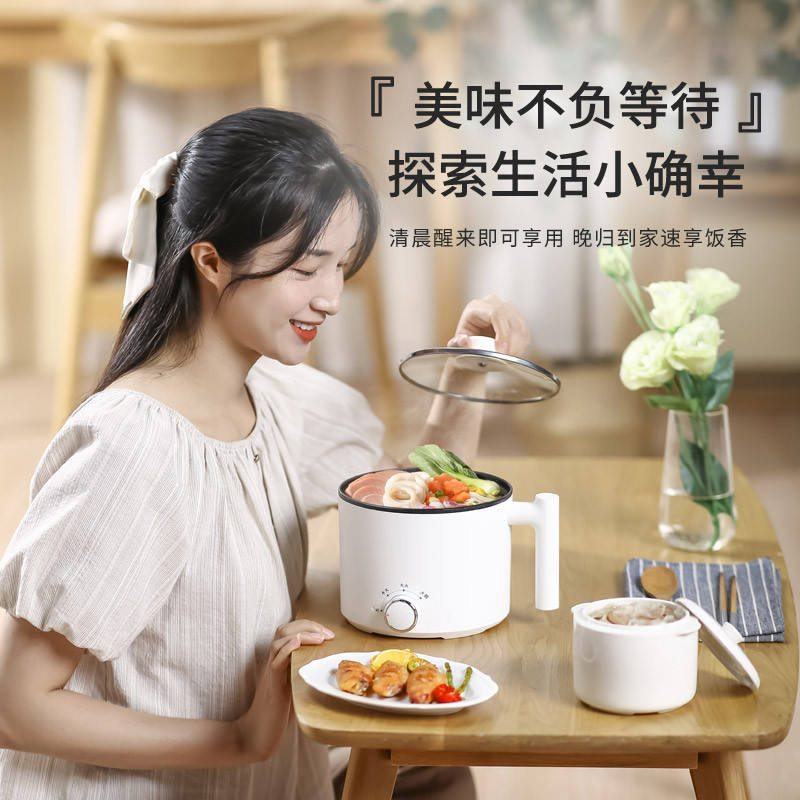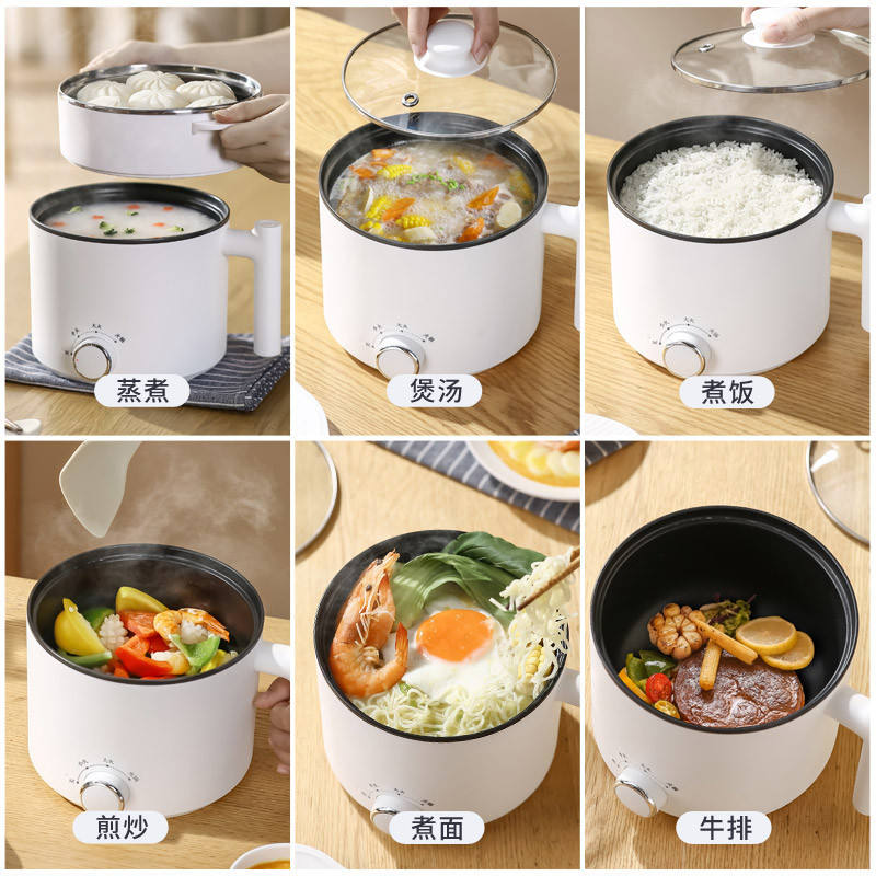 Olla Eléctrica Multifuncional de 1.6L con Recubrimiento Antiadherente para Cocinar, Freír y Cocinar al Vapor en Casa