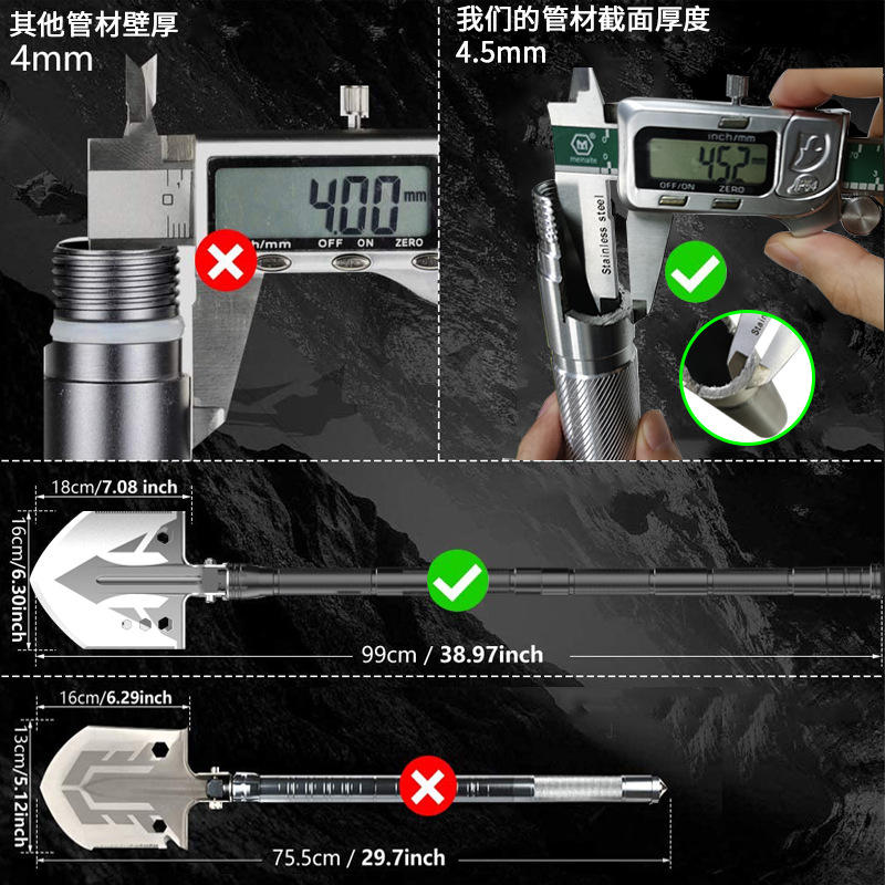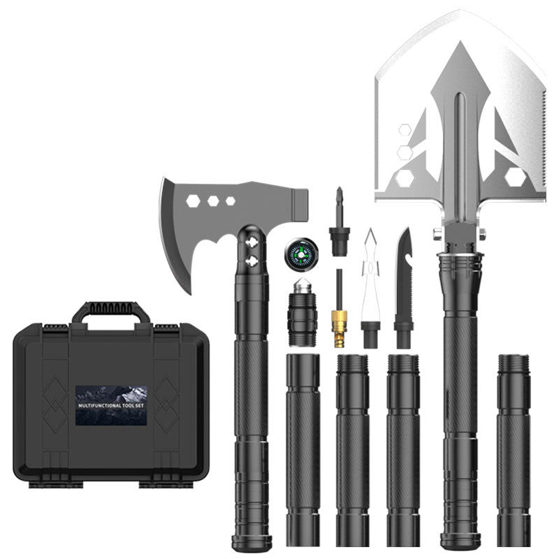 Juego de pala y hacha multifuncional con mango en D, plegable, portátil, para camping, herramienta de grado industrial TD14X-36-F8